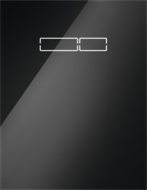 Gornja aktivacijska ploča od stakla za modul TECElux s elektroničkim aktivacijskim tipkalima sen-Touch i pričvrsnim materijalom. Uključujući mrežni adapter (priključni napon od 230 V) s motorom za aktivaciju dvokoličinskog ispiranja.