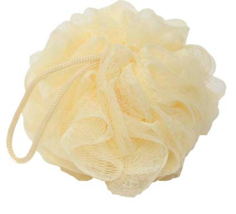 Bež spužva za kupanje izrađena je od kvalitetnog polietilena. Čisti kožu, ostavljajući je blistavom i svježom. Pomaže pri pjenjenju proizvoda za tuširanje te nježno miče mrtve stanice kože. Dimenzija: 18,5x12x12 cm