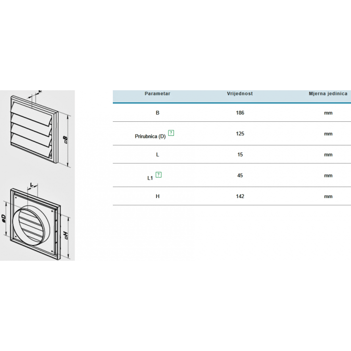 TNB Rešetka ventilacijska fi 125 mm – gravitacijska