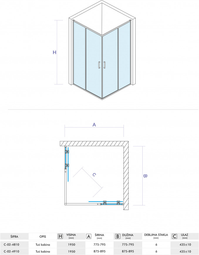Dimenzije: 900 x 900 x 1950 mm