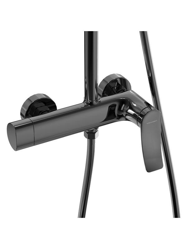 • Tuš sistem Voxort Dahlia Black Shiny (miješalica, tuš ruža, izljevna cijev, tuš slušalica i tuš crijevo)