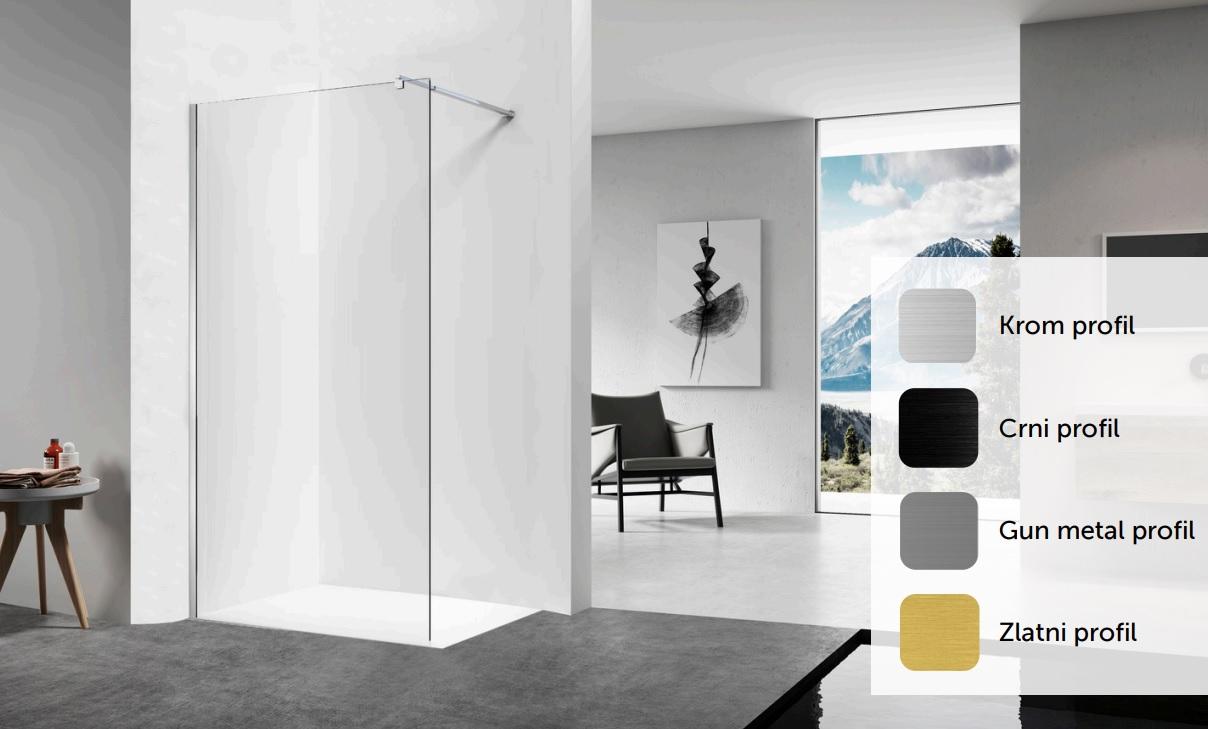 Tuš stijena TAILOR 45cm crni profil, prozirno staklo 6mm 45/200cm