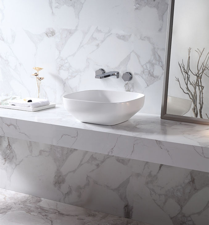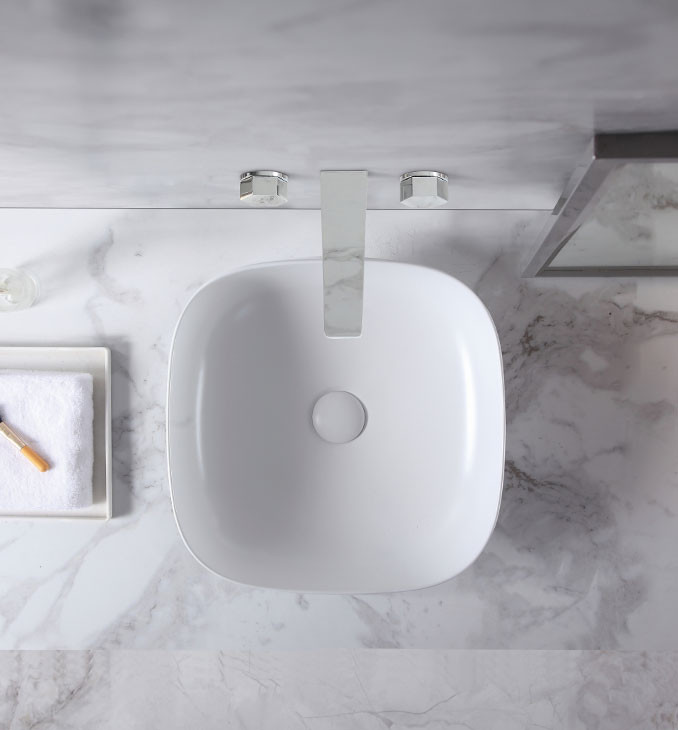 Ovaj model je nadgradni lavabo, što znači da se montira na ploču ili ormarić, a njegova ugradnja je jednostavna i praktična. Nema otvor za slavinu, što ga čini idealnim za kombinaciju sa zidnim ili visokim slavinama, čime se dodatno postiže moderan i luksuzan izgled.