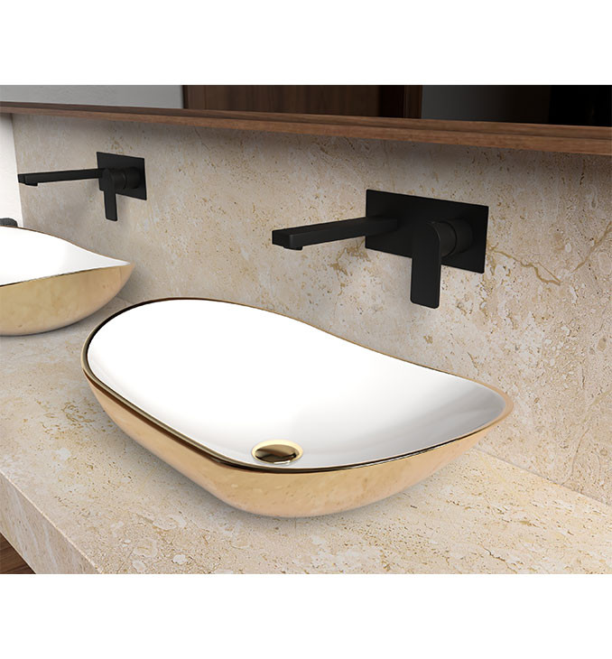 Lavabo COPEN nadgradni dimenzija 615x360x155 mm predstavlja savršeno rešenje za luksuzna i moderna kupatila. Njegov zlatno-beli dizajn unosi sofisticiranost i eleganciju u svaki prostor, dok funkcionalnost i kvalitet izrade pružaju dugotrajnu upotrebu i vrhunsku estetiku.