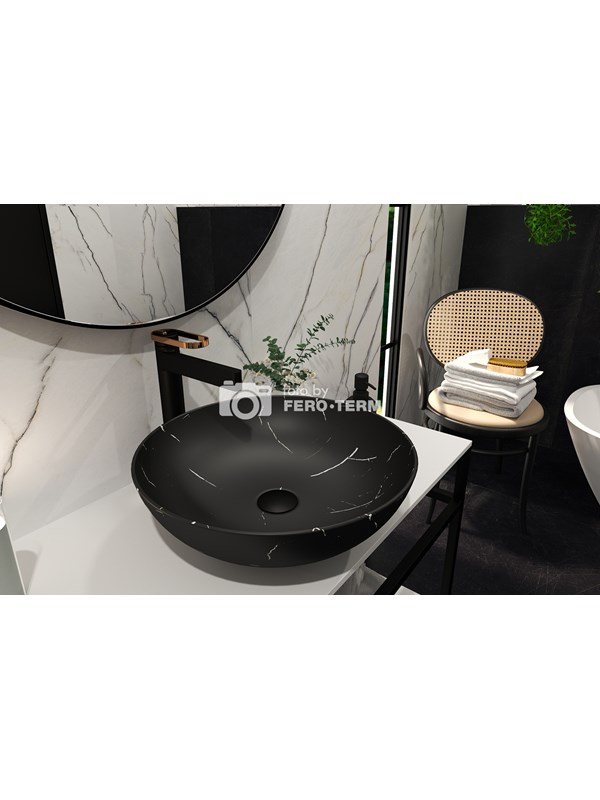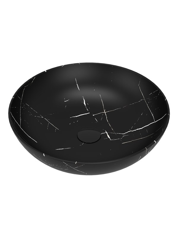 Concepto Bell Marble Black Round nadgradni umivaonik. Modernim dizajnom, okruglim oblikom i crnom bojom sa uzorkom mramora izvrsno se uklapa u suvremeno uređene kupaonice u koje unosi dozu elegancije.