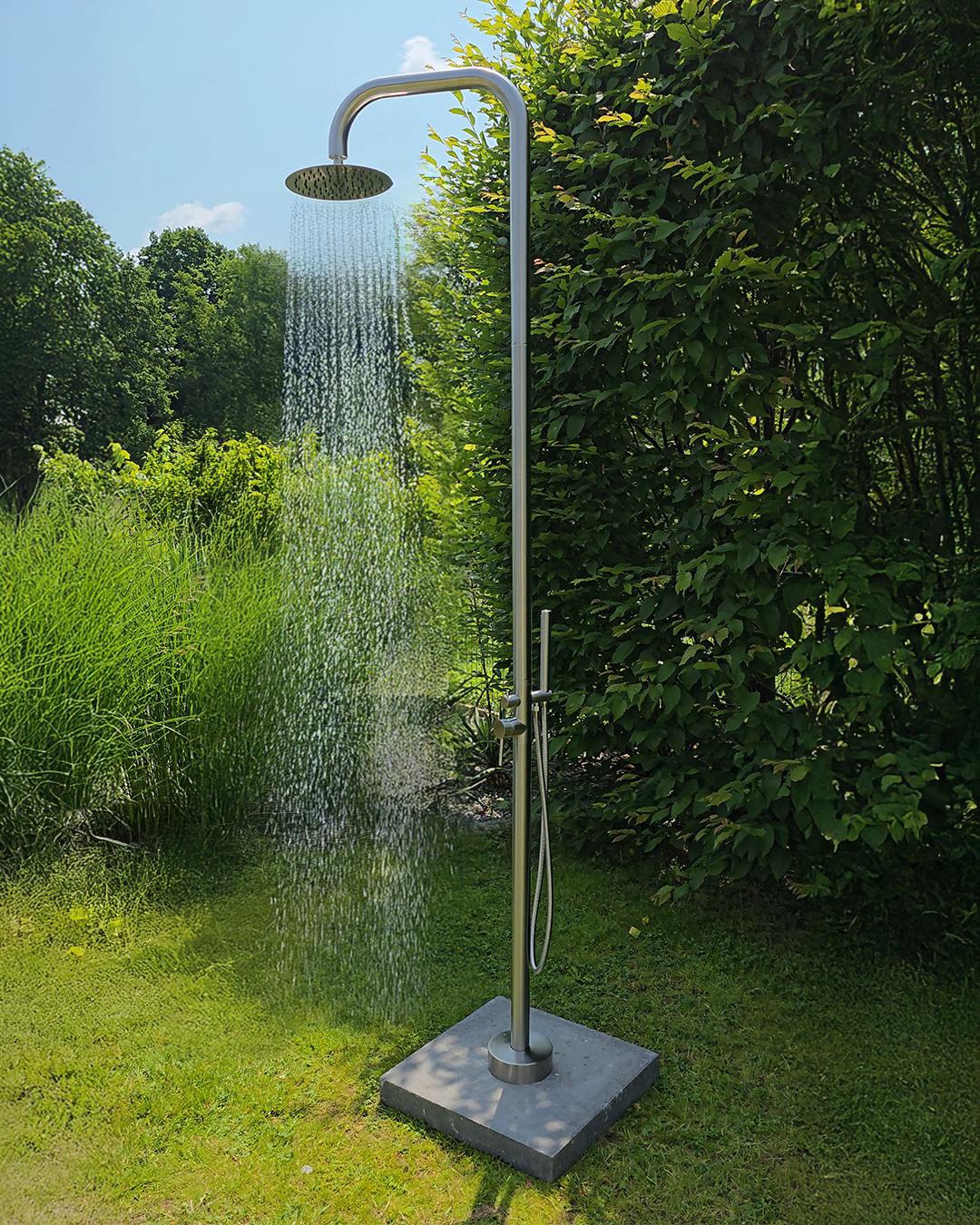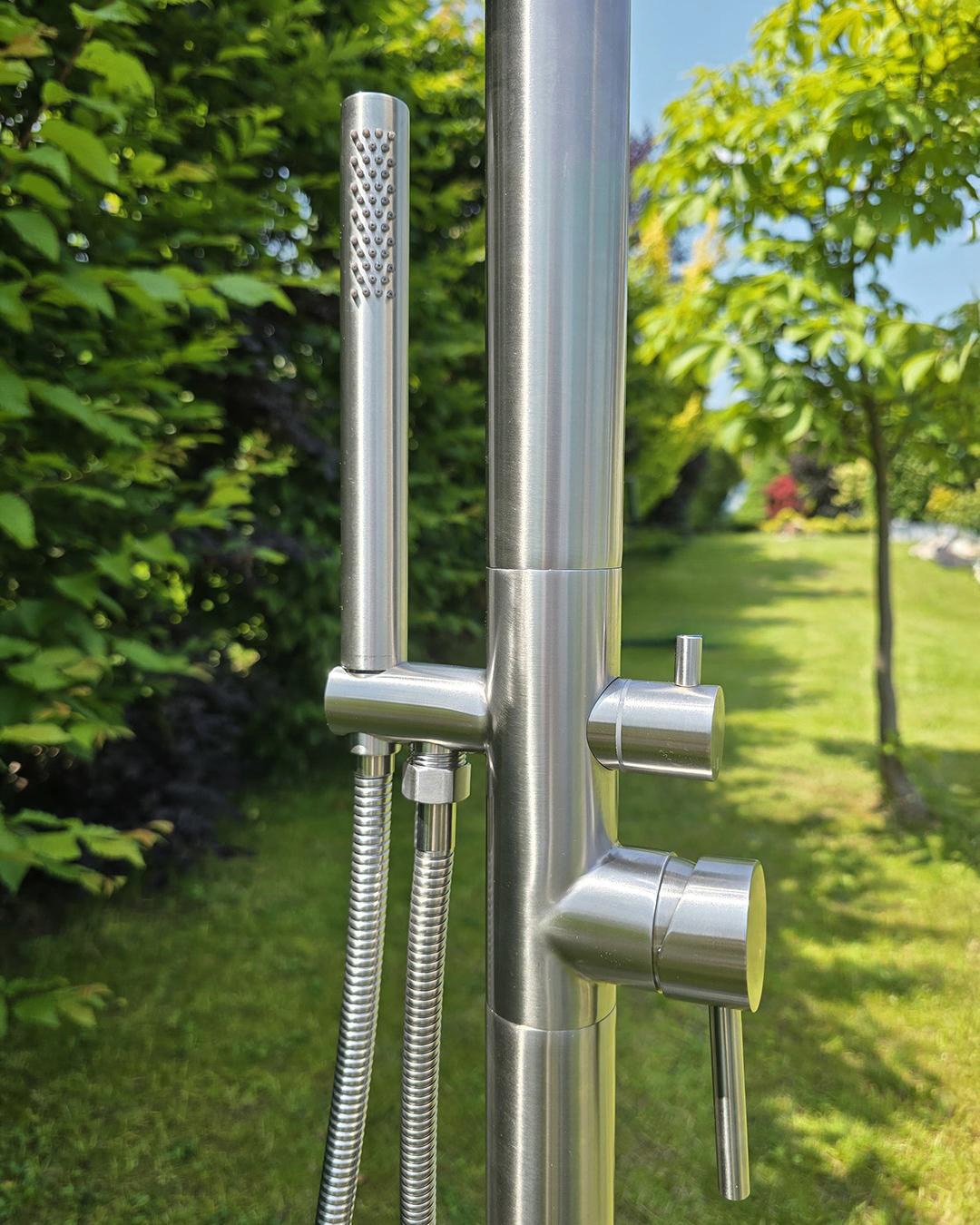 Vanjski tuš set od nehrđajućeg čelika za vaš vrt ili bazen. Visokokvalitetna izvedba otporna na sve vremenske uvjete sa zavšnom izvedbom “inox brushed” za dodatnu eleganciju i ukras vanjskog prostora.