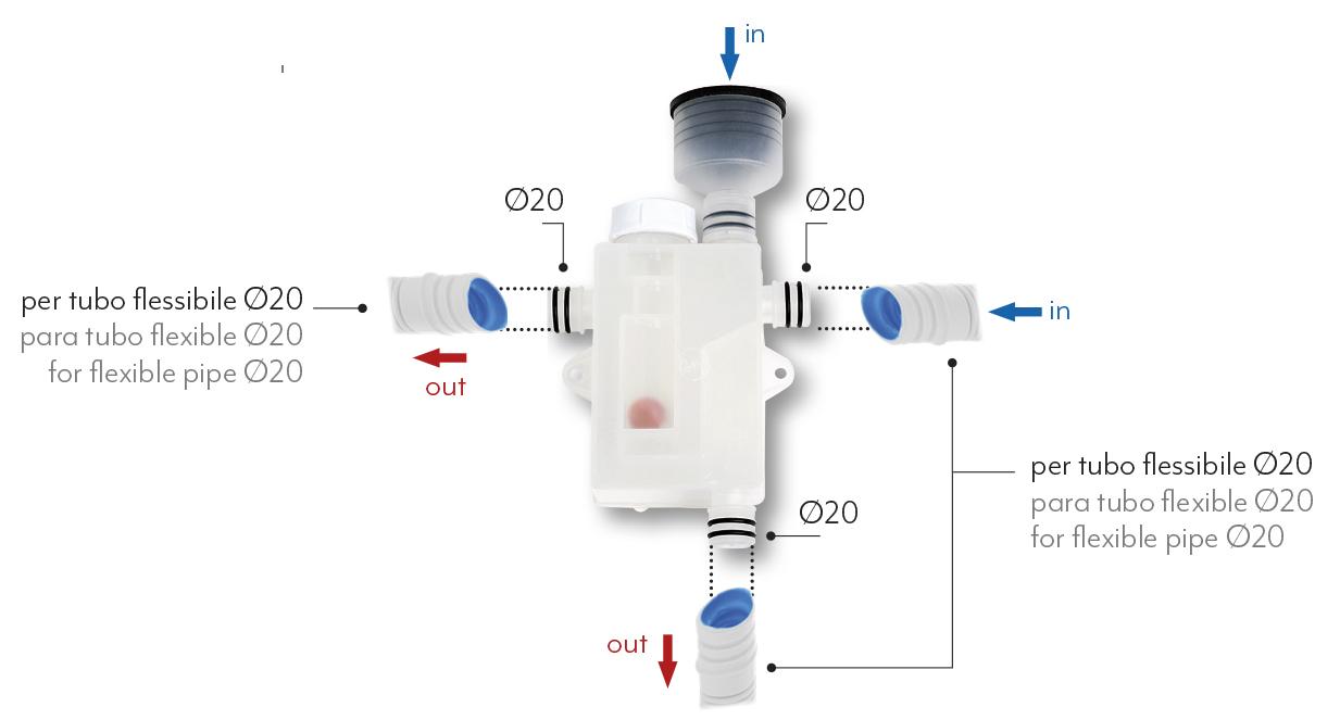 Sifon radi samo okomito s gornjim gumenim otvorom za vodu postavljenim na vrhu.