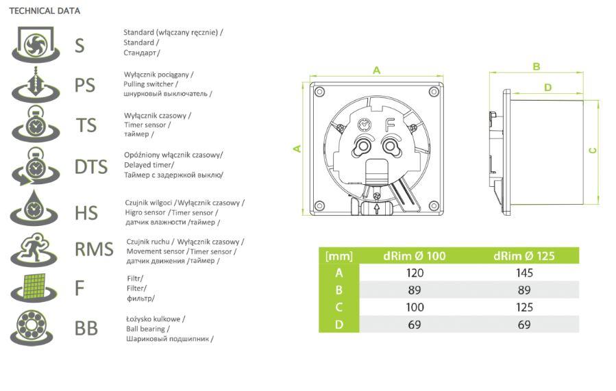 Ventilator AirRoxy dRim fi125 S BBStandard -bez završne maske
