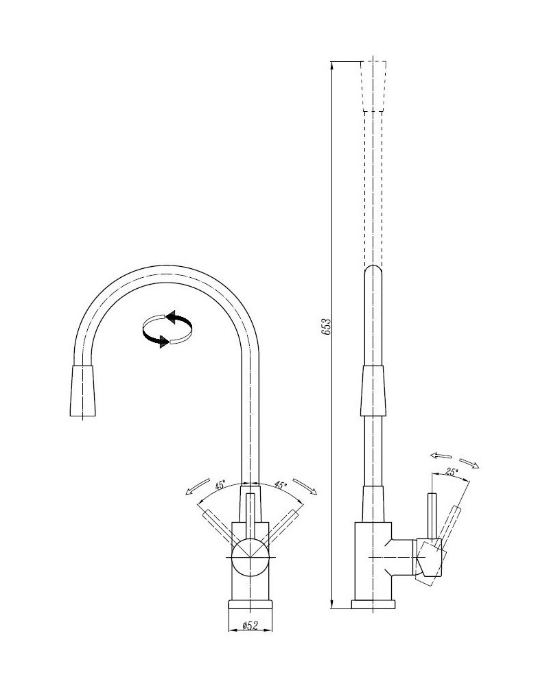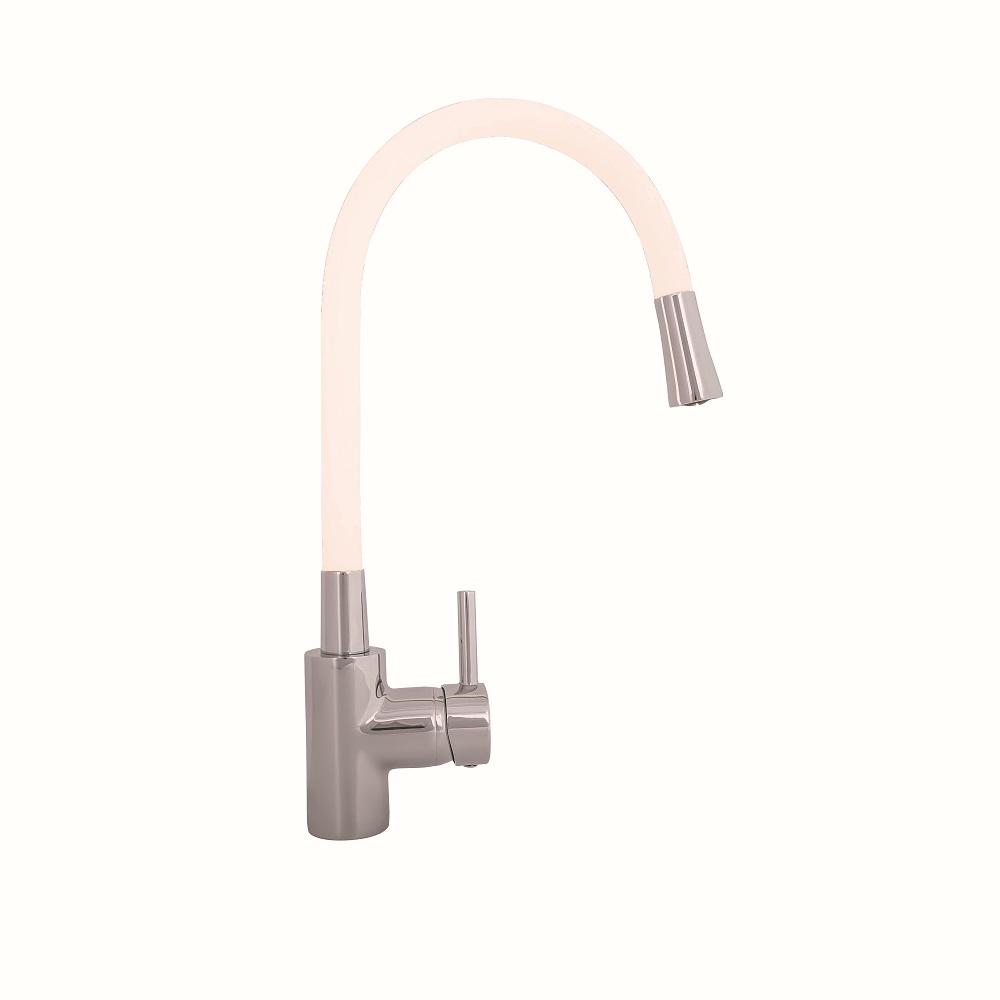 VIVA MIJEŠALICA ZA SUDOPER-SAVITLJIVI IZLJEV, BIJELI krom; jednoruč; visoki vrat, niskotlačna (3 cijevi)
