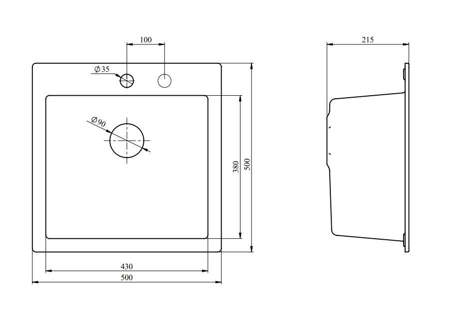 X ATOS 50 GRANIT SUDOPER CRNI KVADRATNI 50x50x21,5cm/sa sifonom fi 90mm